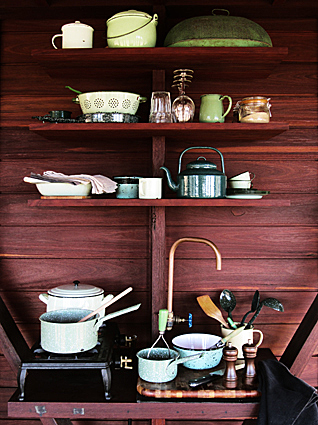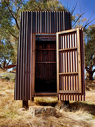 The two-story copper clad tower features sides which open up on the ground level, creating wide verandahs to the north, east and west, and an airy living space. Recycled ironbark and glass interiors add to the stylishly rustic feel, with a kitchen and Rais wood-fired slow combustion stove downstairs, and sleeping loft upstairs. Climb the ladder to the double bed made up with soft, linen sheets, and snuggle under a feather doona and hot water bottles in winter. Heavily insulated, the tower is cool in summer and warm in winter, with water tanks capturing rainfall, which is gravity-fed to the kitchen. A separate WC, also in copper-clad hardwood, is located a short walk away, and boasts some of the best views you’ll ever enjoy.